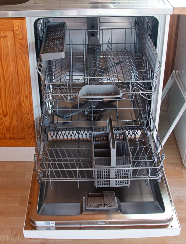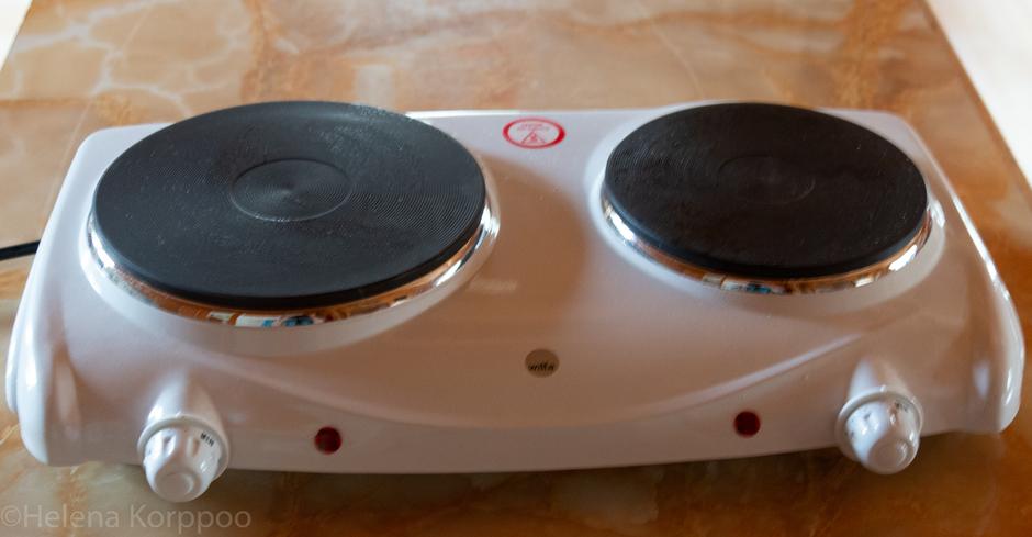 Kiertoilmauuni leveys 60 cm, 2 termaria á n. 1,9 litraa, vedenkeitin ja mikrouuni.